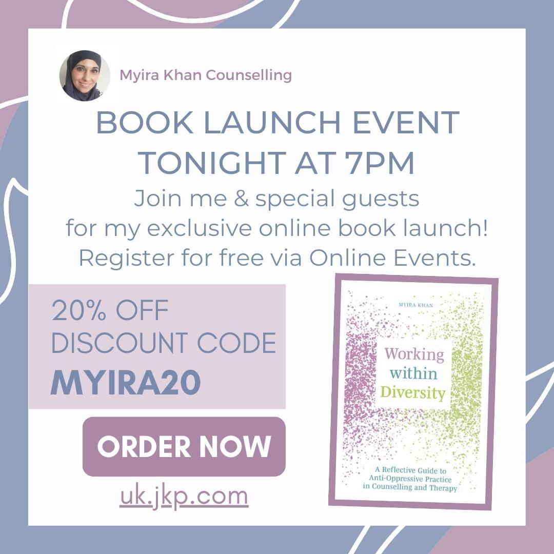 To book your ticket email: myira@myirakhancounselling.co.uk