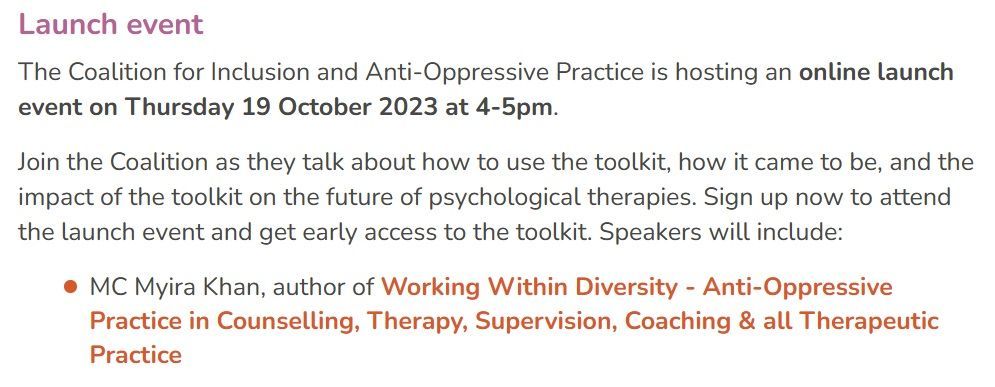 For any further information about an event please email Myira on myira@myirakhancounselling.co.uk